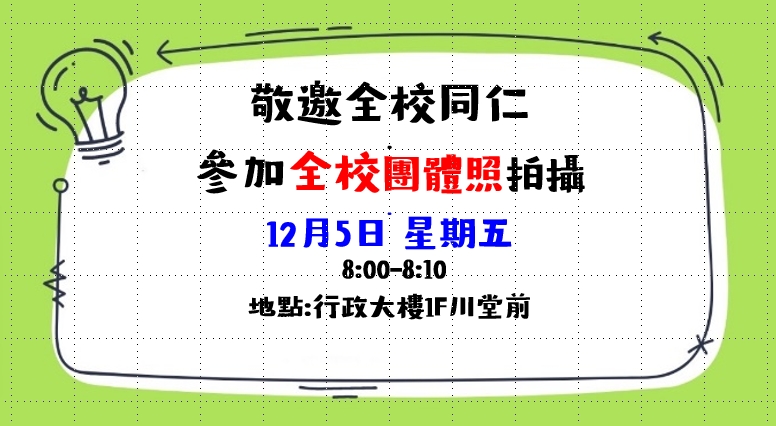 114學年度 全校教職員工團體照拍攝 瀏覽次數: 43Post author:hlvs302Post published:2025-11-10Post category:重要公告Read more articles上一篇文章【段考】114學年度第1學期第2次段考試科目時間表(11/25-11/26)請留意修正處紅色字體(11/07修正)下一篇文章114學年第1學期第2次段考特殊生彈性評量相關內容(重要)-4月19日本校辦理高一、高二抽考,請出題老師於4月15日前將考題與答案卡(舊版小卡)交至教務處,若逾期送達,麻煩請各位師長自行印製,以上懇請配合,謝謝。2024-04-09中華民國111年1月12日修正公布之「性別工作平等法」部分條文,業經行政院111年1月17日院臺勞字第1110001084號令,定自111年1月18日施行2022-02-11