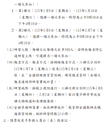 轉知-教育部國教署114 學年度臺灣手語教師及教學支援工作人員第2次增能暨回訓研習實施計畫教育部國民及學前教育署114-學年度臺灣手語教師及教學支援工作人員第-2-次增能暨回訓研習實施計畫下載 瀏覽次數: 23Post author:hlvs203Post published:2025-12-28Post category:研習活動Read more articles上一篇文章轉知-「114年中小學媒體素養教育教師研習計畫」下一篇文章台南二中辦理B5-1生成式AI與教育應用工作坊請老師踴躍參加相關內容臺北市立松山高級商業家事職業學校數學領域之教師參加「教育部技術型高級中等學校數學領域推動中心111學年度跨科整合教學設計徵選活動」,敬請踴躍報名參加。2022-08-05財團法人大學入學考試中心基金會大學入學考試中心辦理「大學入學考試素養導向命題工作坊-地理科」。2023-08-15