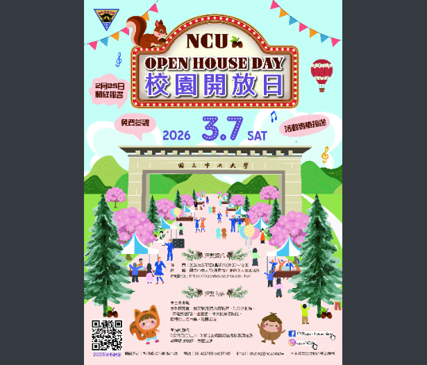 【轉知】國立中央大學辦「2026 Open HouseDay校園開放日」活動國立中央大學-函下載 瀏覽次數: 7Post author:hlvs302aPost published:2026-03-02Post category:學生訊息Read more articles上一篇文章【轉知】國立臺灣體育運動大學奧林匹克教室展區導覽時間表下一篇文章【轉知】國立彰化師範大學辦理之「SDGs 飛英任務 – 飛英高手風雲榜」相關內容勞動部勞動力發展署113年產業新尖兵計畫-BIM數位建設工程實務班第一梯次,歡迎踴躍報名2024-07-11【轉知】國立臺灣師範大學「2026臺師大科技營-科技航海艦隊」活動2025-12-12