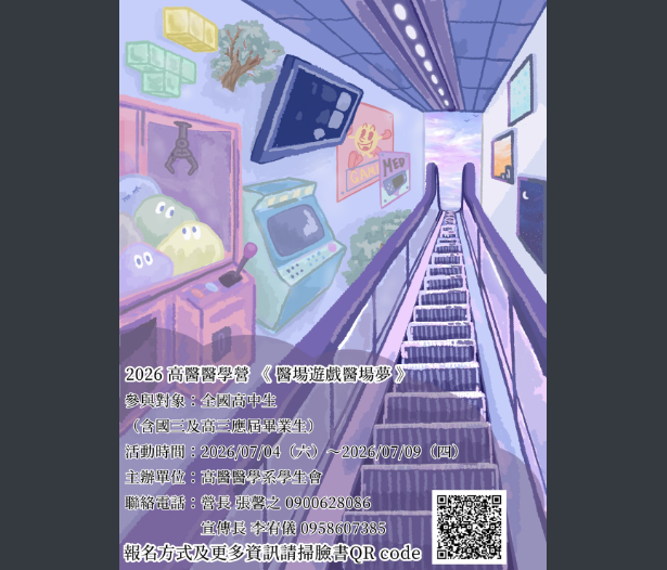 【轉知】高雄醫學大學擬於115年7月4日(星期六)至7月9日(星期四)舉辦醫學營活動高雄醫學大學-函下載 瀏覽次數: 11Post author:hlvs302aPost published:2026-04-08Post category:學生訊息Read more articles上一篇文章115年四技二專技優甄審報名相關時程資訊下一篇文章【轉知】國立臺北商業大學辦理「115年全國所得稅申報學生納稅服務成果競賽」相關內容中央警察大學謹訂於112年7月23日至27日共同舉辦「2023暑期CSI鑑識體驗營」高中教師營及高中學生營,鼓勵貴校所屬教師及同學踴躍報名參加2023-04-12雲林縣113年「縣長盃」硬筆書法比賽實施計畫(含初賽題目與初賽稿紙格式), 鼓勵報名參加。2024-10-25