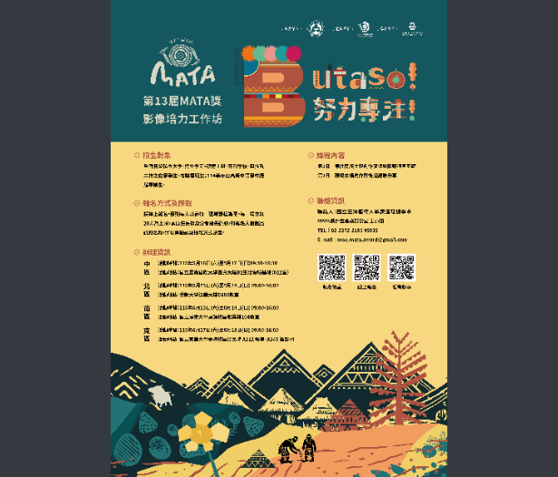 【轉知】教育部委辦國立臺灣藝術大學「第13屆MATA獎影像培力工作坊」招生簡章及海報電子檔各1份國立臺灣藝術大學-函下載第-1-3-屆-M-A-T-A-獎影像培力工作坊招生簡章下載 瀏覽次數: 5Post author:hlvs302aPost published:2026-04-23Post category:學生訊息Read more articles上一篇文章【轉知】國立臺灣師範大學「115年僑務探索營」延長報名至115年4月27日止相關內容轉知:內政部消防署辦理「114年宣導防範居家一氧化碳中毒青少年四格漫畫競賽」,詳如附件,敬請參閱。2025-04-15教育部辦理「全民資安素養自我評量」活動,請師生踴躍參加2021-09-30