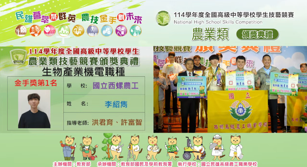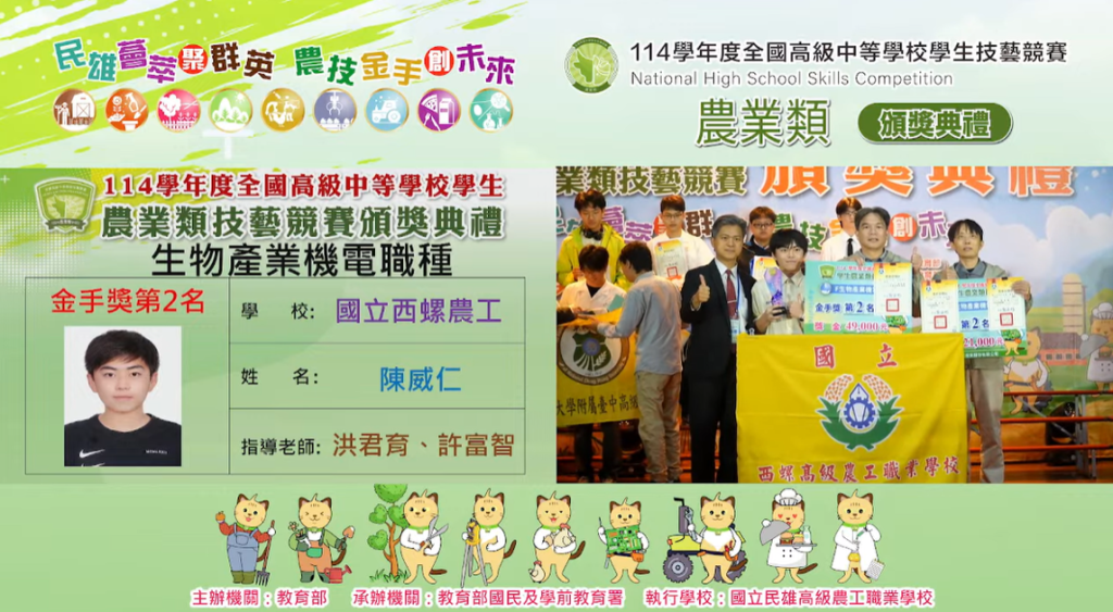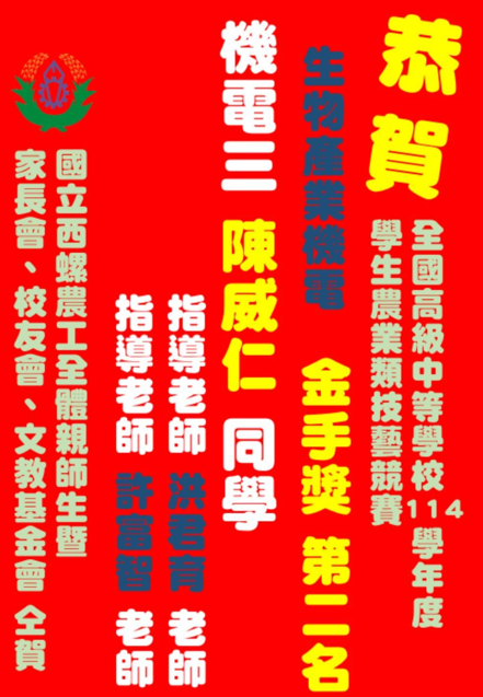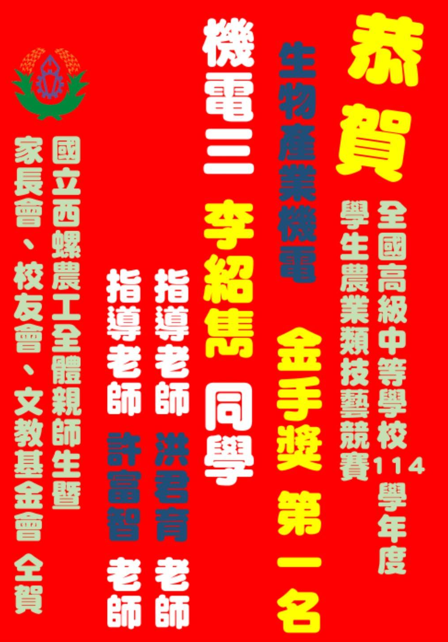 本科簡介科教育目標與課程架構本科實習工場環境及設備榮譽榜教學資源師資陣容 歡迎 洪君育 老師加入生物產業機電科教學團隊聯絡人:林世峰主任 侯朝文技士電話:05-5862024 分機 561,562Email: shyfung@hlvs.ylc.edu.tw 瀏覽次數: 1,453